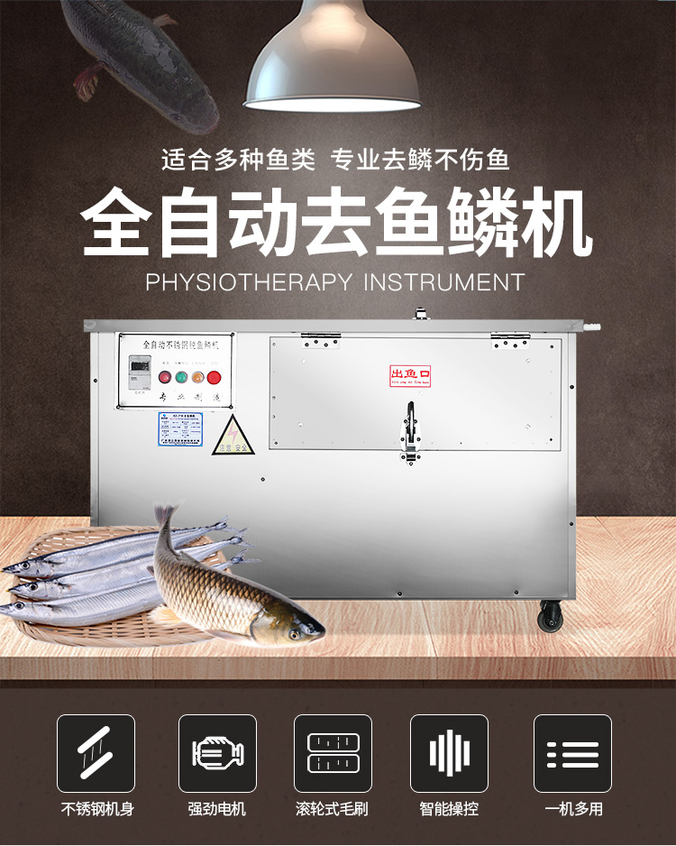 自動魚鱗機廣泛應用于魚類銷售市場、飯店、魚類加工廠等等,本產品不會對魚頭、魚尾、魚鰭造成損傷。該機器利用旋轉效應,使魚在運動中去鱗,去鱗干凈,對魚的加工去鱗屬國內外首創(chuàng),主要指標達到國際先進水平。