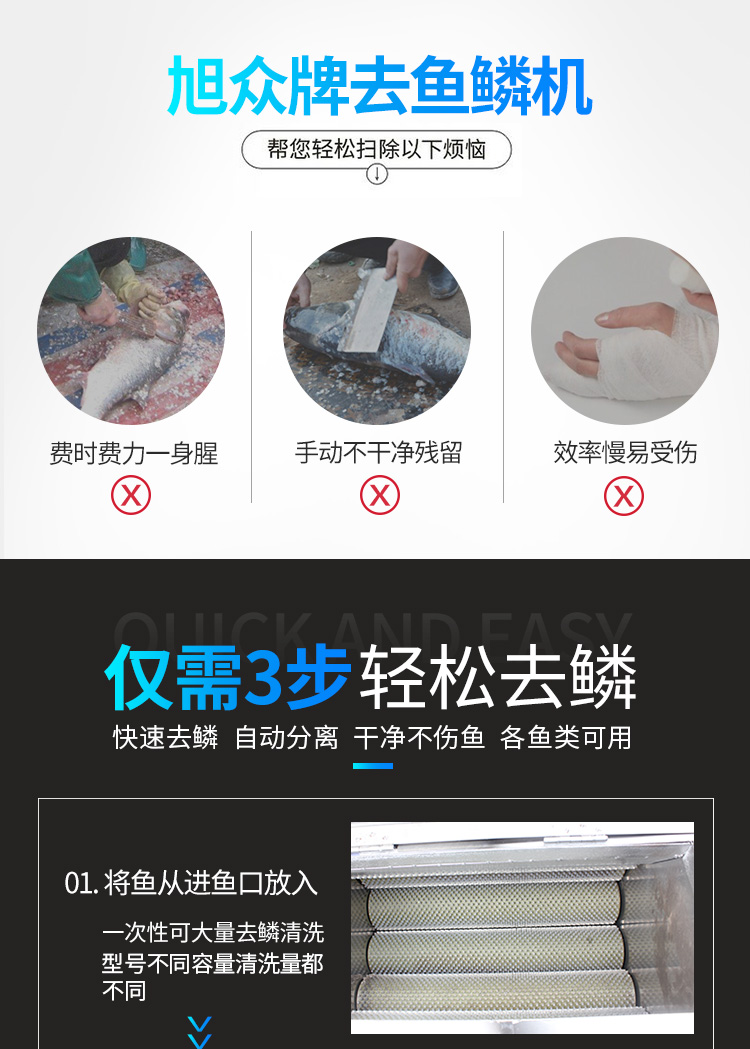 3.功能強大,直接實現(xiàn)去魚鱗和殺魚的工藝,生產效率高,產量大。