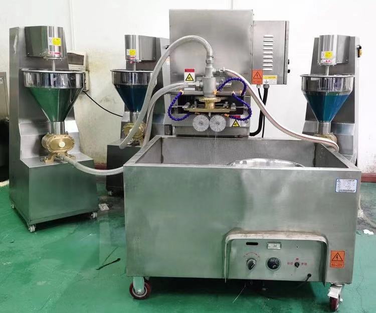 709多功能成型機新一代的多功能淡水丸機為魚肉制品成型設(shè)備,配合泵脯(供料機)使用,能生產(chǎn)出單色、包心及多色各種花式的品種,單色配一臺、兩種顏色配兩臺、三色配三臺。該機采用雙電機雙變頻設(shè)計,不單只是速度可調(diào),而且產(chǎn)品上的條紋旋度也可調(diào),使得做出的產(chǎn)品更多樣化,操作起來更方便。特別配備滾切刀,能生產(chǎn)出平口和圓口的淡水丸,具有一機多用的特點,可做產(chǎn)品:淡水丸、魚排、小布丁、鱈魚卷、蝦卷、蟹卷、烤魚棒、片片脆、鴛鴦片等火鍋料